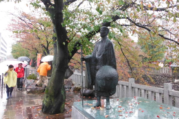 大垣市奥の細道むすびの地記念館脇に立つ芭蕉像