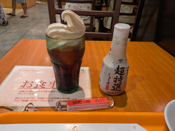 今回は、伊東園ホテルチェーンの宿に20泊したので、おまけとして無料で宿泊しました。熱海市では、今年4月から入湯税の他に宿泊税が掛かるようになりました。チェックインの時、「別に350円掛かります」と言われたので驚いてしまいました。