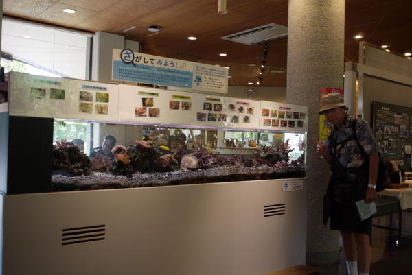 ビジターセンター内部:水槽の中でたくさんの熱帯魚?が泳いでいます。