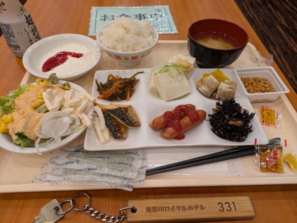 写真は朝食ですが、夕食で揚げたて天ぷらが食べられる等、チェーン店の中では特に料理に力を入れているのが感じられます。