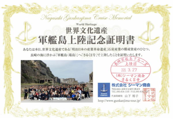 当日参加者全員に配られた上陸記念証明書に船会社のブログにアップした写真を張り付けたものです。最後列中央付近の帽子を被った人物が怪しいです。