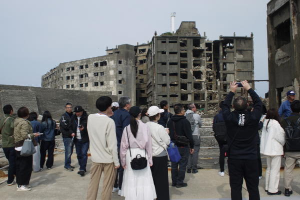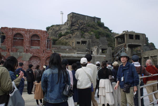 通称軍艦島と呼ばれるこの島への上陸が、今回の旅の最終目的地です。長崎港の常盤2号桟橋を定刻の午後1時40分より10ほど早く出航した船には、約100名の乗客を載せていました。